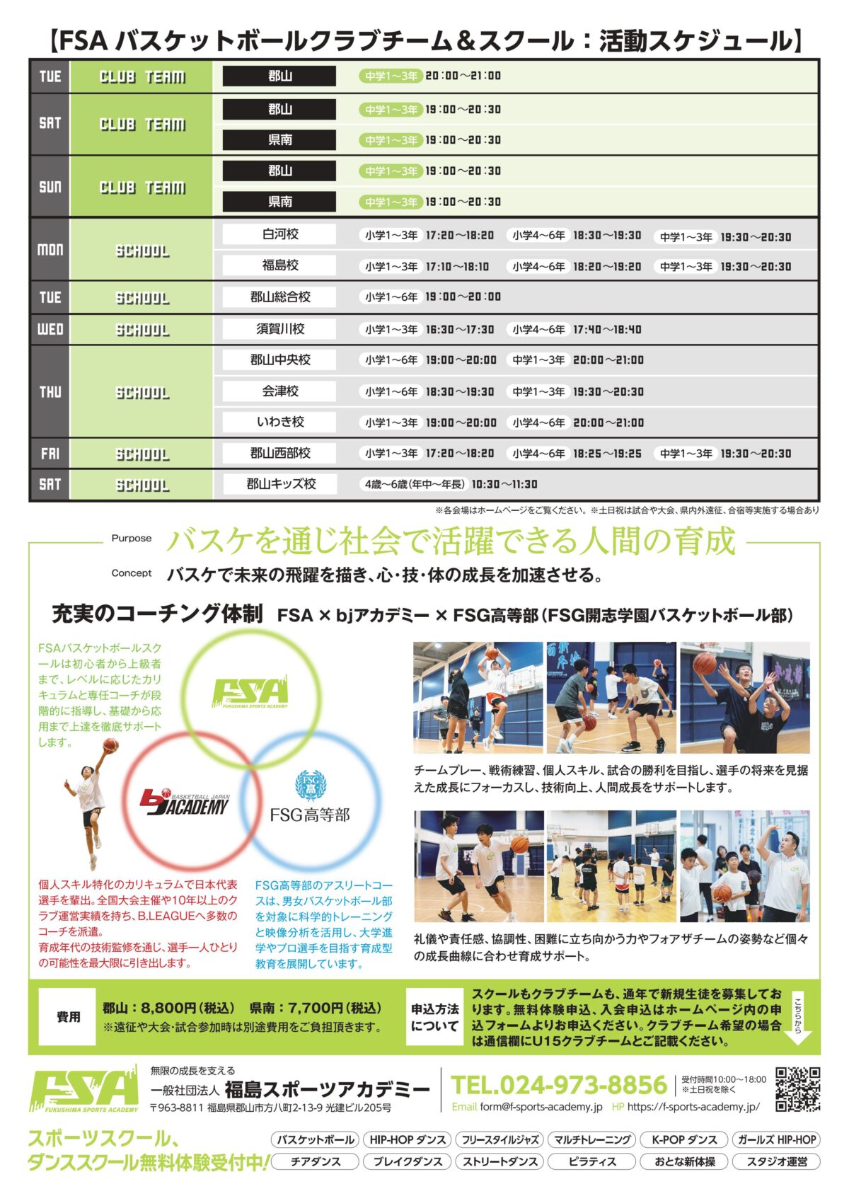 【バスケスクール】GROW UPクラス新規開校のお知らせ(強化育成)/およびFSAクラブチーム発足計画に関して | スクール全体 | 福島スポーツアカデミー