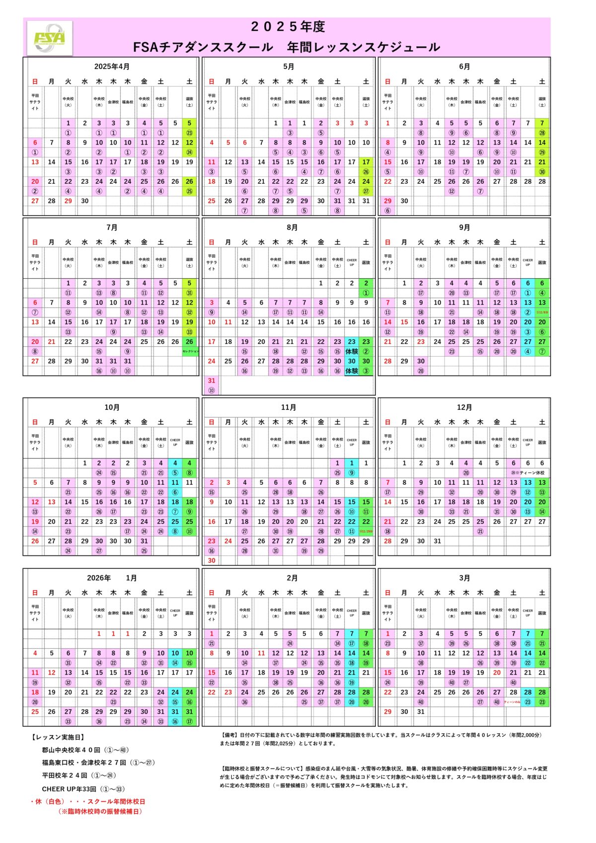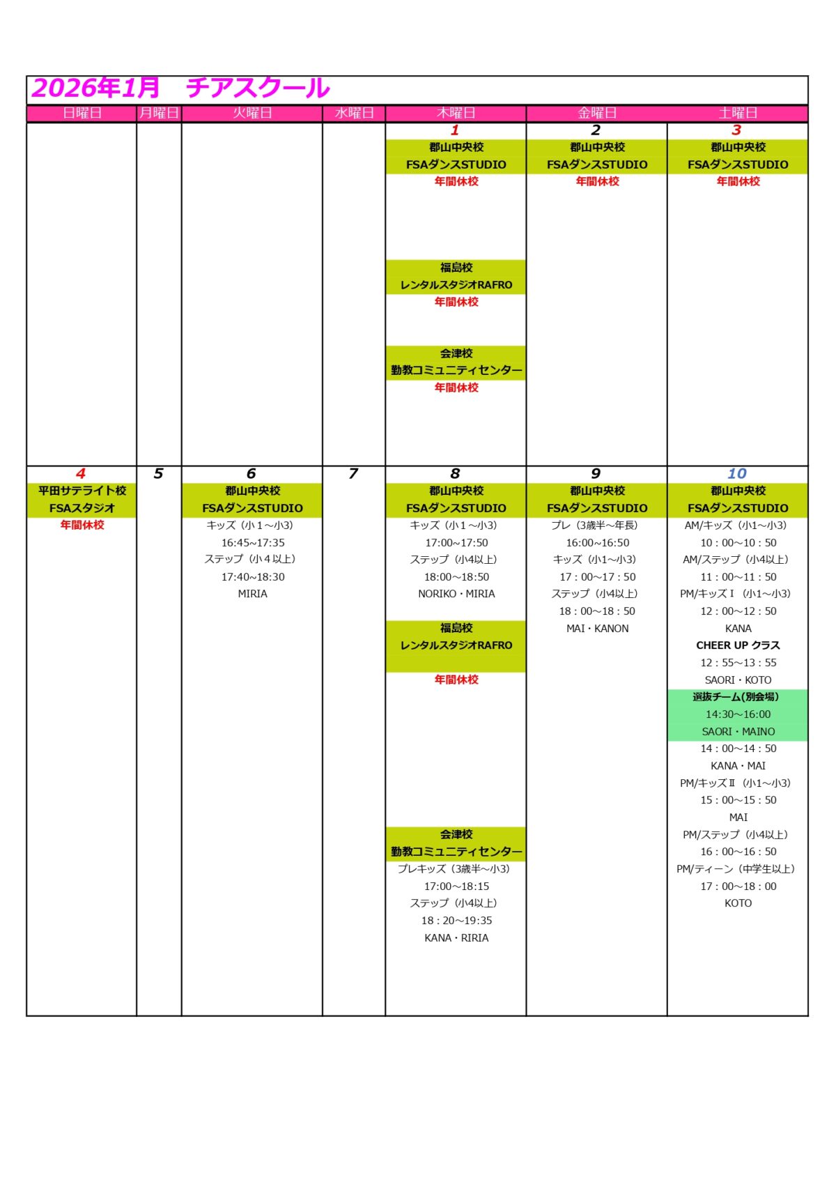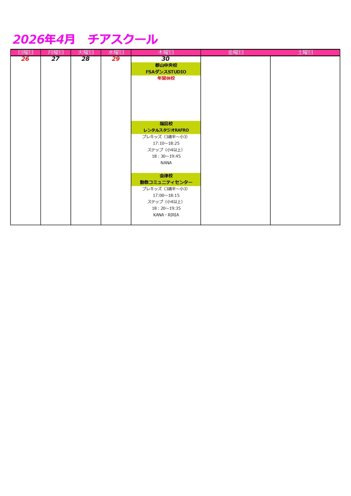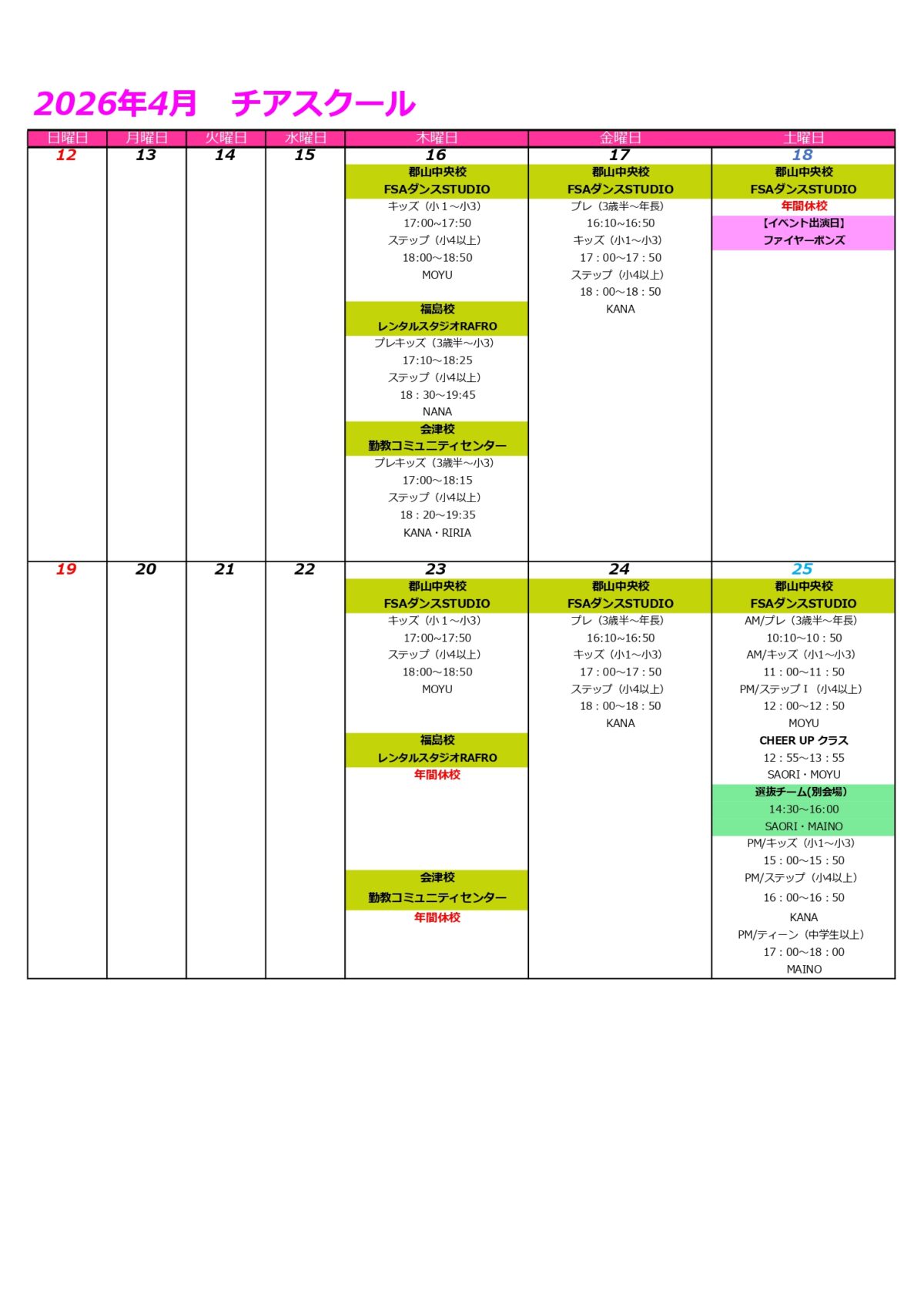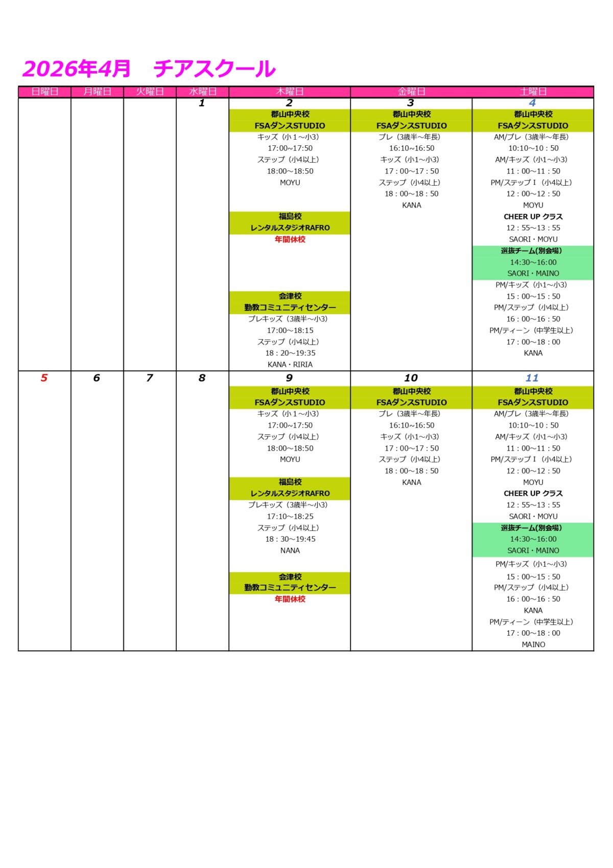 土曜日郡山中央校(土)FSAダンスSTUDIO(イオンタウン郡山)