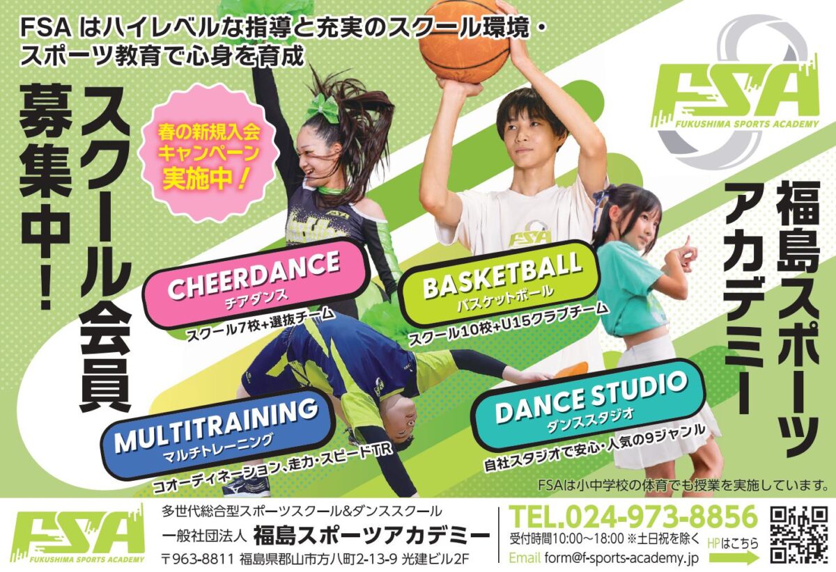 福島スポーツアカデミーFSAスポーツスクール&ダンススクールでは、【2026春の入会キャンペーン】を開催しますのでお知らせ致します。